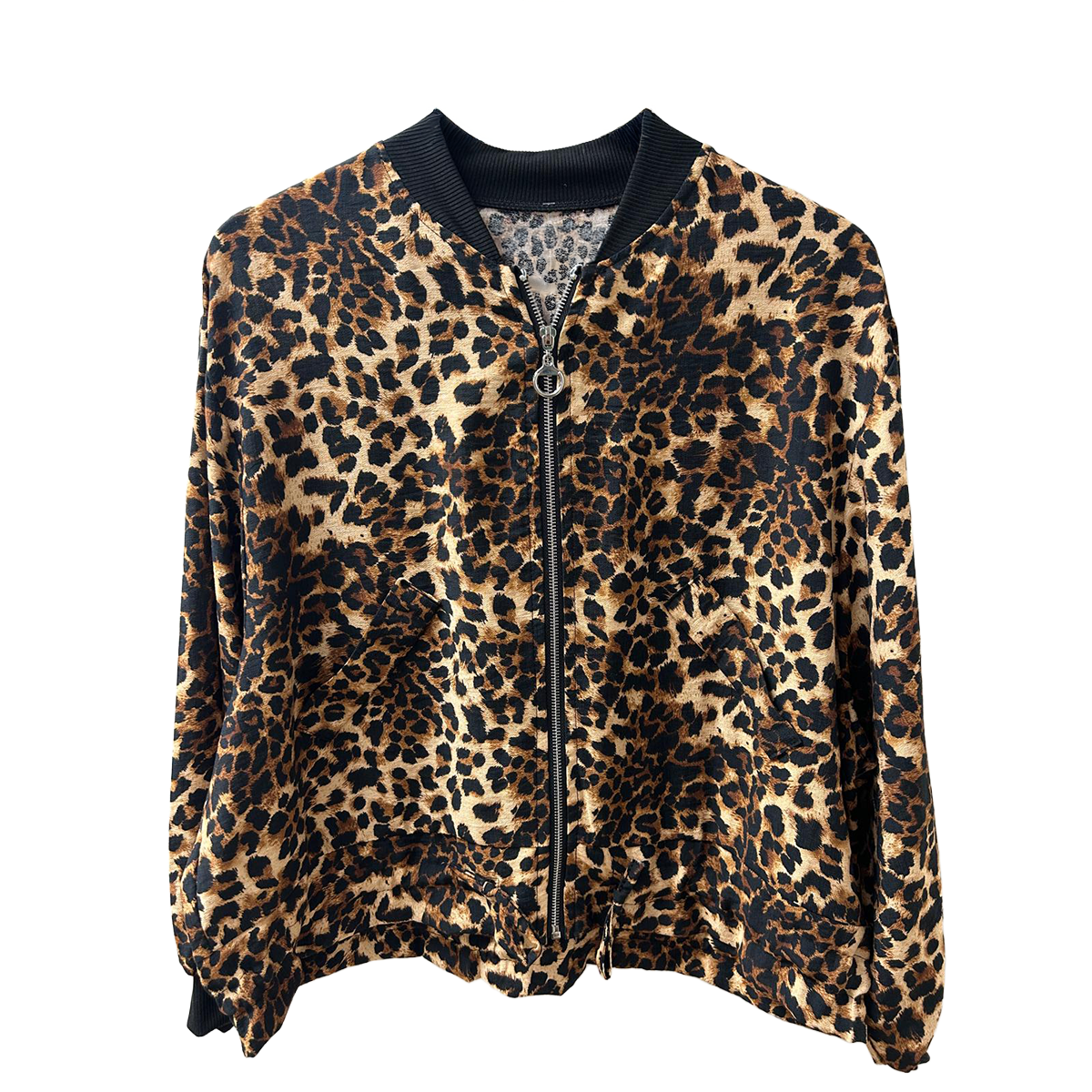 A bold animal print lightweight bomber jacket with a sleek zip fastening and a modern, easy-to-wear silhouette.