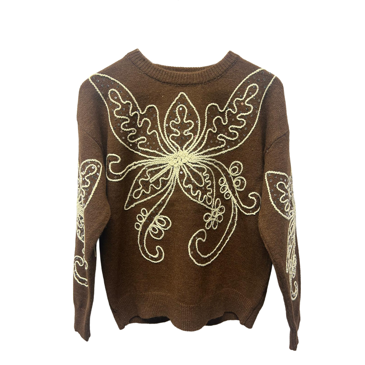 Chic and versatile, this embellished jumper is the perfect blend of comfort and style. Available in cream and brown, it features delicate embellishments that add a subtle sparkle, elevating a classic knit into something special. With its soft fabric and relaxed fit, it’s easy to dress up with tailored trousers and heels or keep casual with jeans and boots.