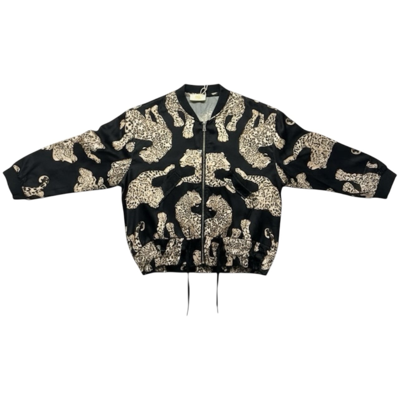 A bold satin-blend animal print bomber jacket with a sleek zip fastening. Pairs perfectly with the matching wide-leg trousers.